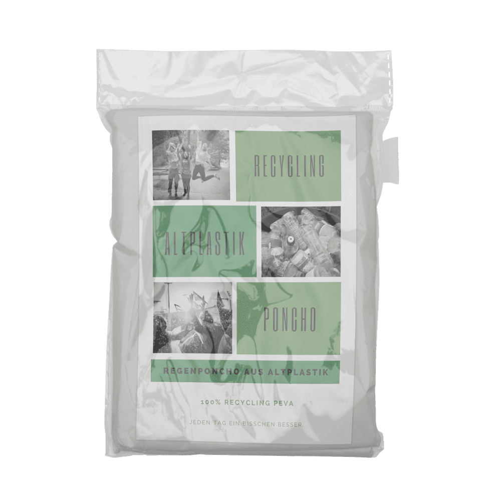 Durable rain poncho in size XL. Made from recycled old plastic.